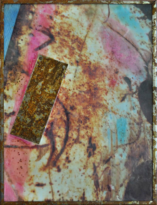 Encaustic on board with rusted metal